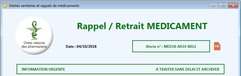 Au lancement de FAST, un message d’alerte s’affiche pour prévenir tout utilisateur de FAST qu’une alerte sanitaire ou un rappel de lot a été diffusé.