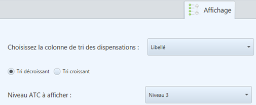 INFORMATION Si le tableau des dispensations est déjà trié sur une colonne quelconque, alors le paramètre de tri n’est pas appliqué. Seul le niveau ATC est appliqué quel que soit le choix du tri de colonne. |